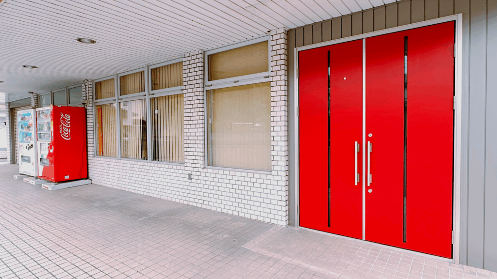大きな赤い扉が目印です。(※看板はありませんのでご注意ください。)
